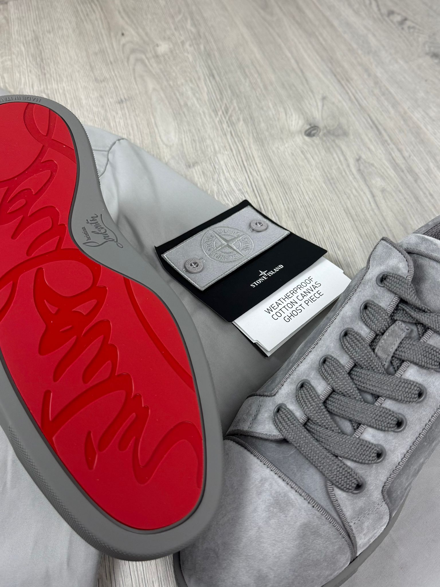 Crafted from stretch sateen cotton, these cargo pants offer flexibility, comfort, and a subtle sheen. Featuring versatile cargo pockets with snap closures, ergonomic lens patches on the knees, and a zip fly, they’re engineered for movement and everyday utility—finished in a muted grey tone for modern versatility.